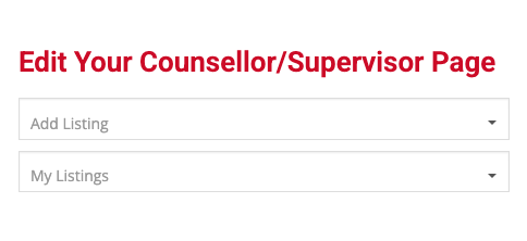 Step 1. Go to the account dashboard and login. https://canadiancounselling.ca/dashboard/ – click the My listing tab and when it opens choose your profile type (counsellor or supervisor). Note, you can also go directly to the url link of your profile page if you know it.